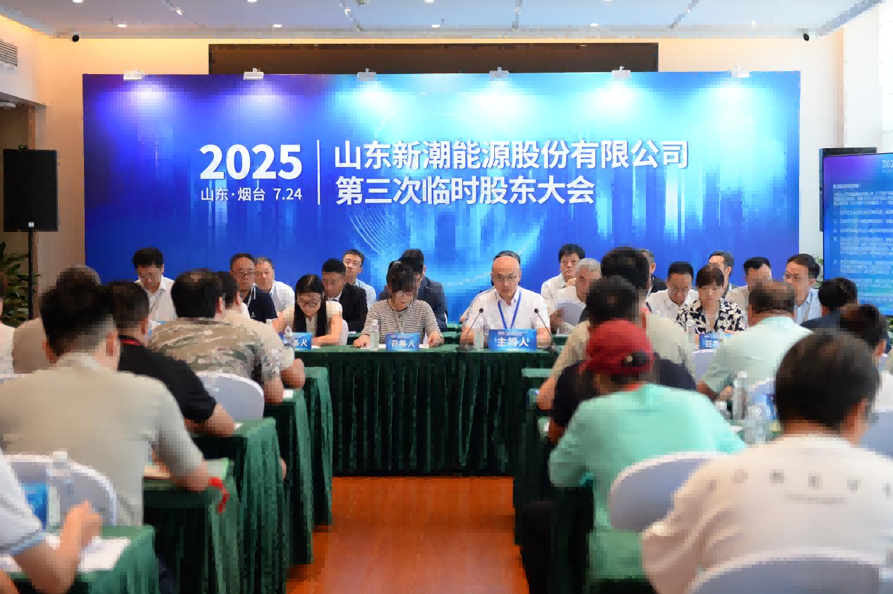 [山东烟台, 2025年7月24日] –由深圳市宏语商务咨询有限公司、陈开军、宋娟、王震、宁波国金阳光股权投资中心(有限合伙)、内蒙古伯纳程私募基金管理有限公司-伯纳程芯茂会世1号私募证券投资基金六名中小股东依法自行召集的山东新潮能源股份有限公司2025年第三次临时股东会于2025年7月24日在烟台市牟平区滨海东路616号牟平宾馆7楼第一会议室成功召开。